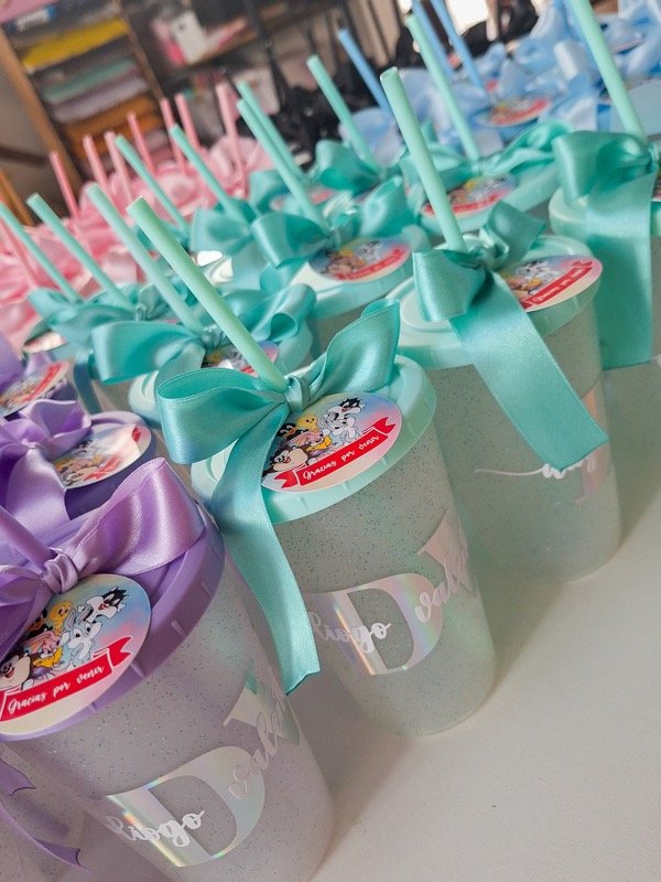♡ Vaso transparente glitter con tapas rosa, lila, celeste, verde agua, negra.